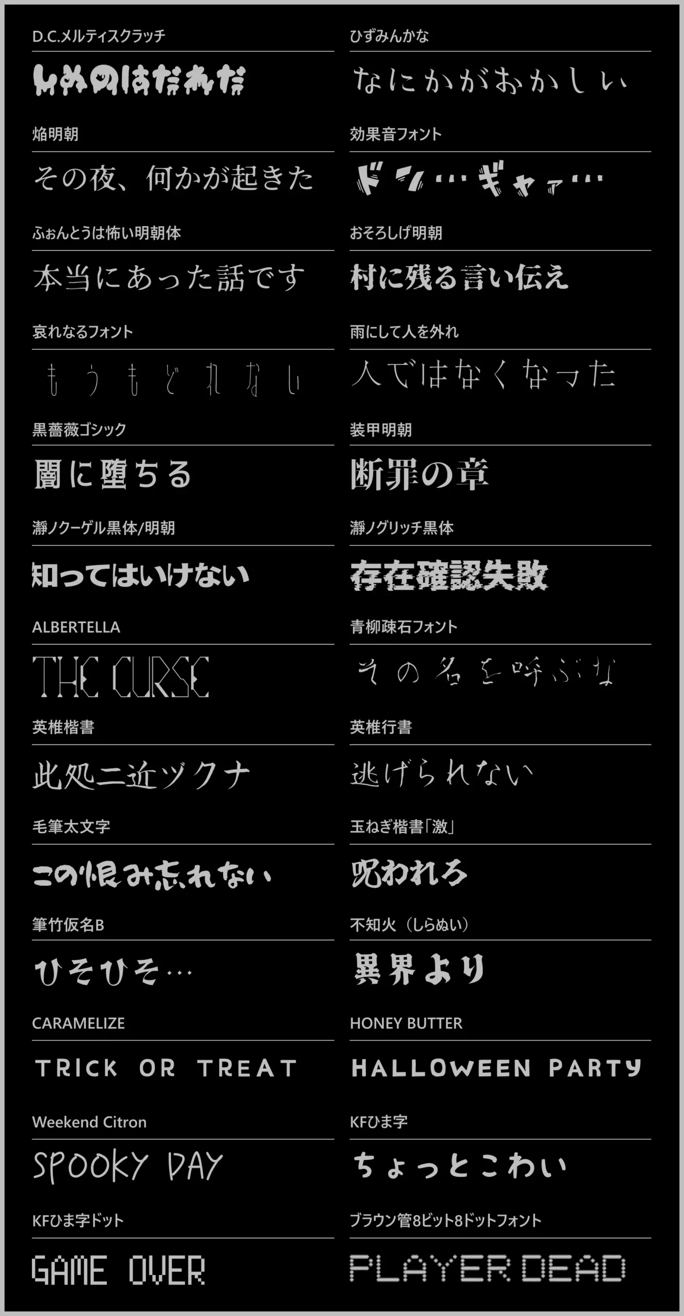 商用OK|ホラーフォント一覧表